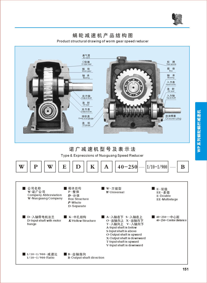 產(chǎn)品參數(shù) >> WP系列蝸輪蝸桿減速機-