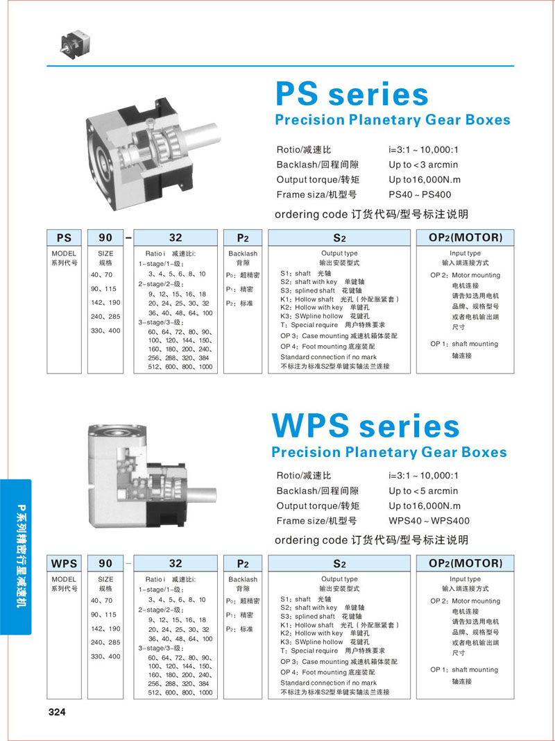 產(chǎn)品參數(shù) >> P系列精密行星減速機(jī)-
