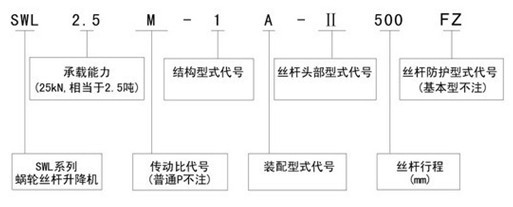 SWL蝸輪絲杠升降JB/T8809-1998型號說明與標(biāo)記方法: